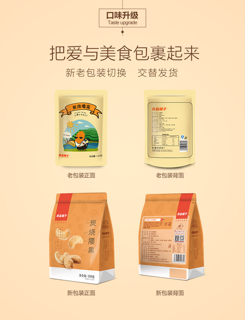 良品铺子炭烧腰果仁120g零食特产腰果仁炒货每日坚果
