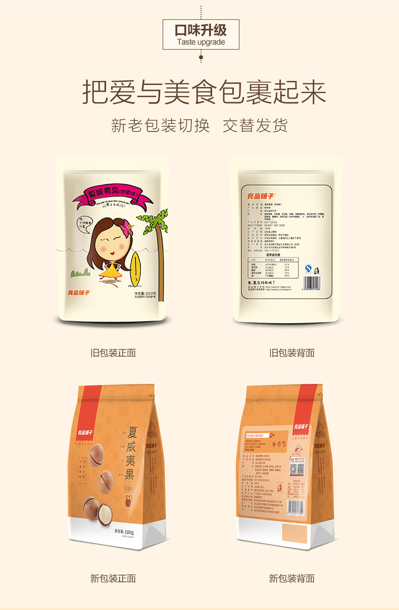 良品铺子干果零食奶香夏威夷果120g特产每日坚果休闲食品