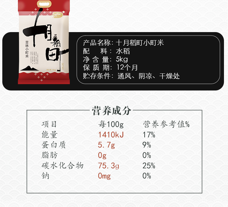 十月稻田吉林小町米5kg 秋田小町东北大米寿司香米