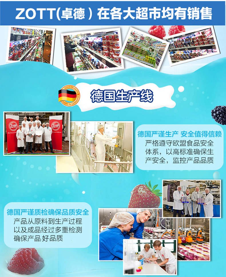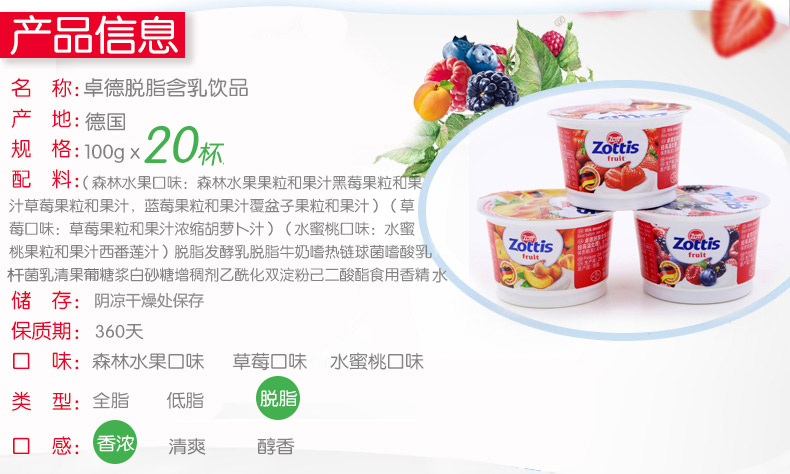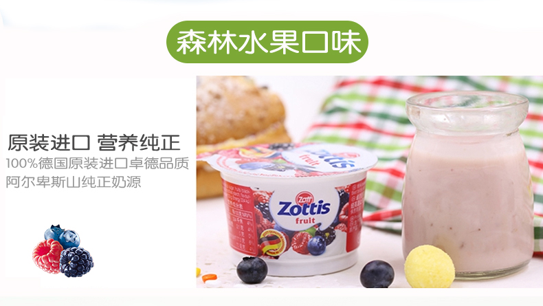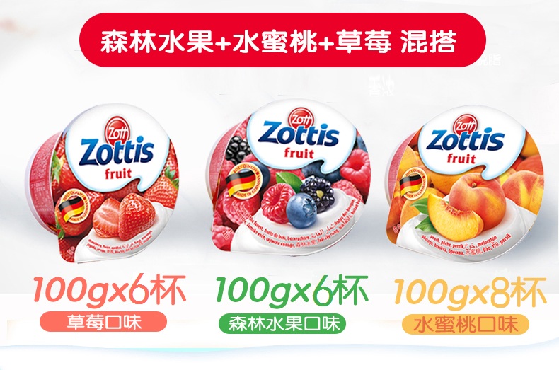 德国原装进口zott卓德果粒酸奶100g*20杯草莓6+水蜜桃8+森林水果6