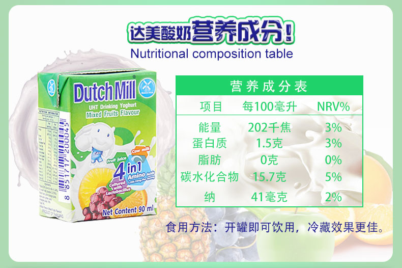 泰国进口酸奶饮品达美酸奶混合果味礼盒90ml*24/盒