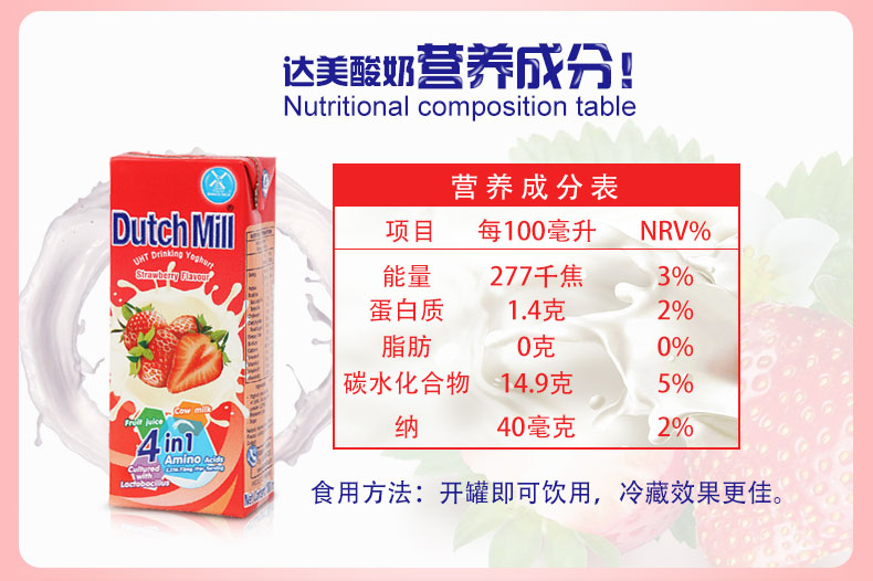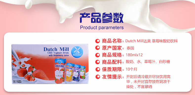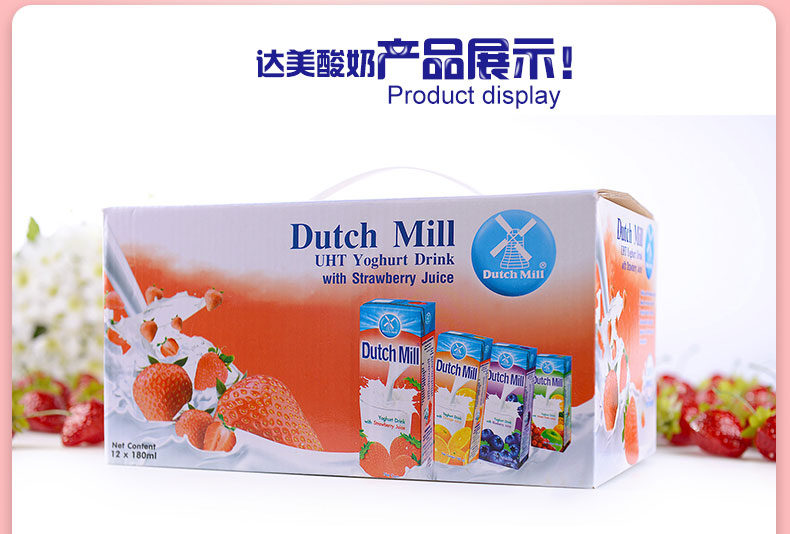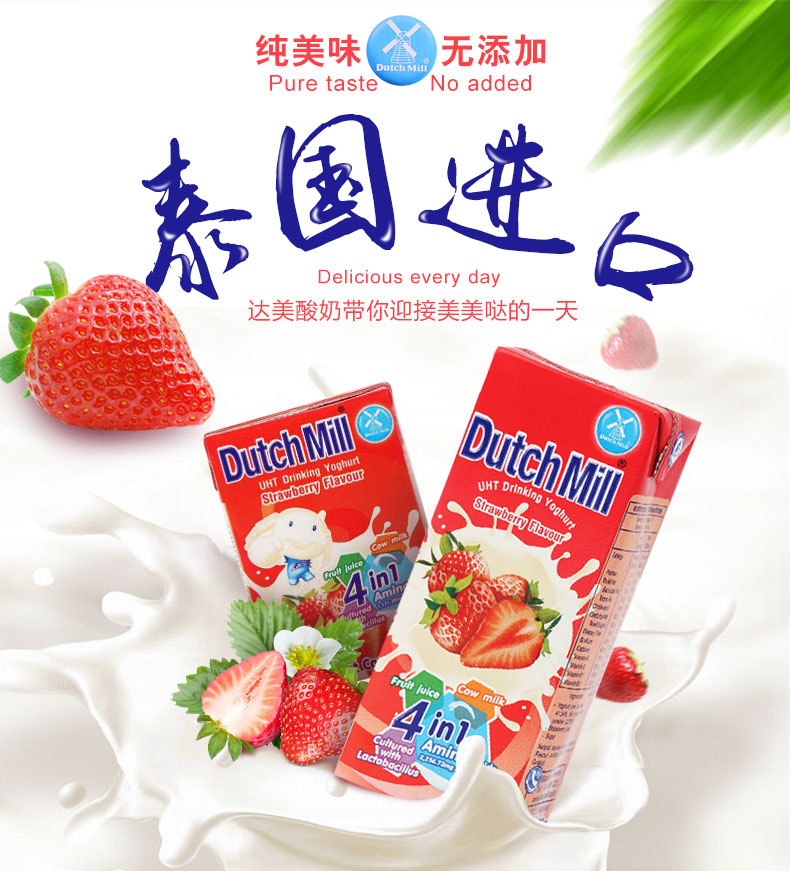 泰国进口酸奶 达美酸奶饮品草莓味180ml*12/盒礼盒装