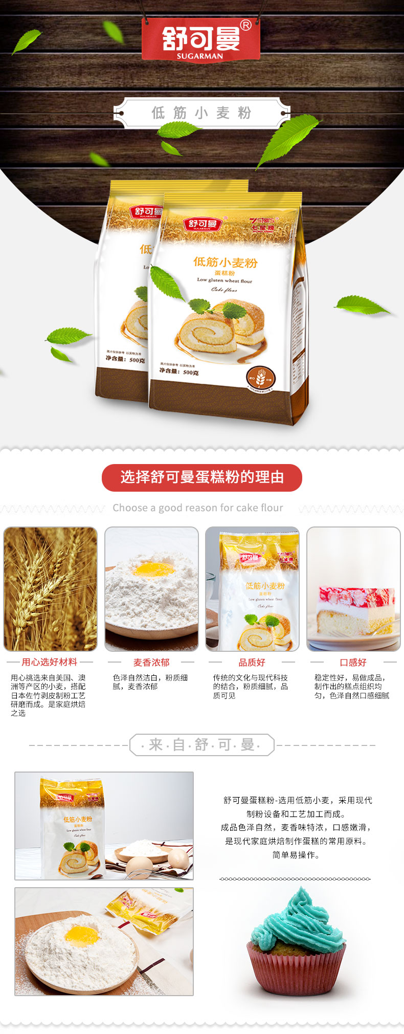 舒可曼低筋面粉500g糕点粉面包粉蛋糕粉饼干粉小麦粉烘焙原料