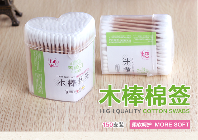 芳草地双头棉签棒一次性化妆卸妆棉球棒清洁消毒棉花棒150支盒装