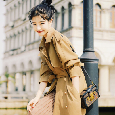 原形系带风衣女中长款 春款韩版大衣显瘦收腰长袖外套