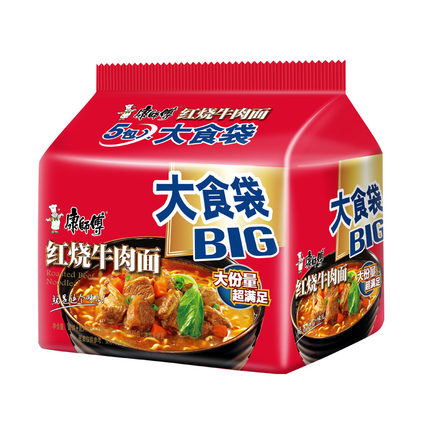 - 康师傅 大食袋红烧牛肉面 120g*5袋 方便面泡面